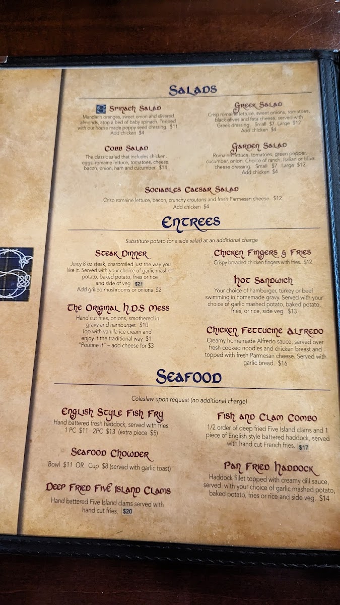 Introducing Sociables Pub and Eatery, a hidden gem nestled at 25 Main St, Springhill, NS. This cozy establishment offers a delightful menu that pays homage to classic pub fare, with a unique twist that will leave your taste buds craving more.